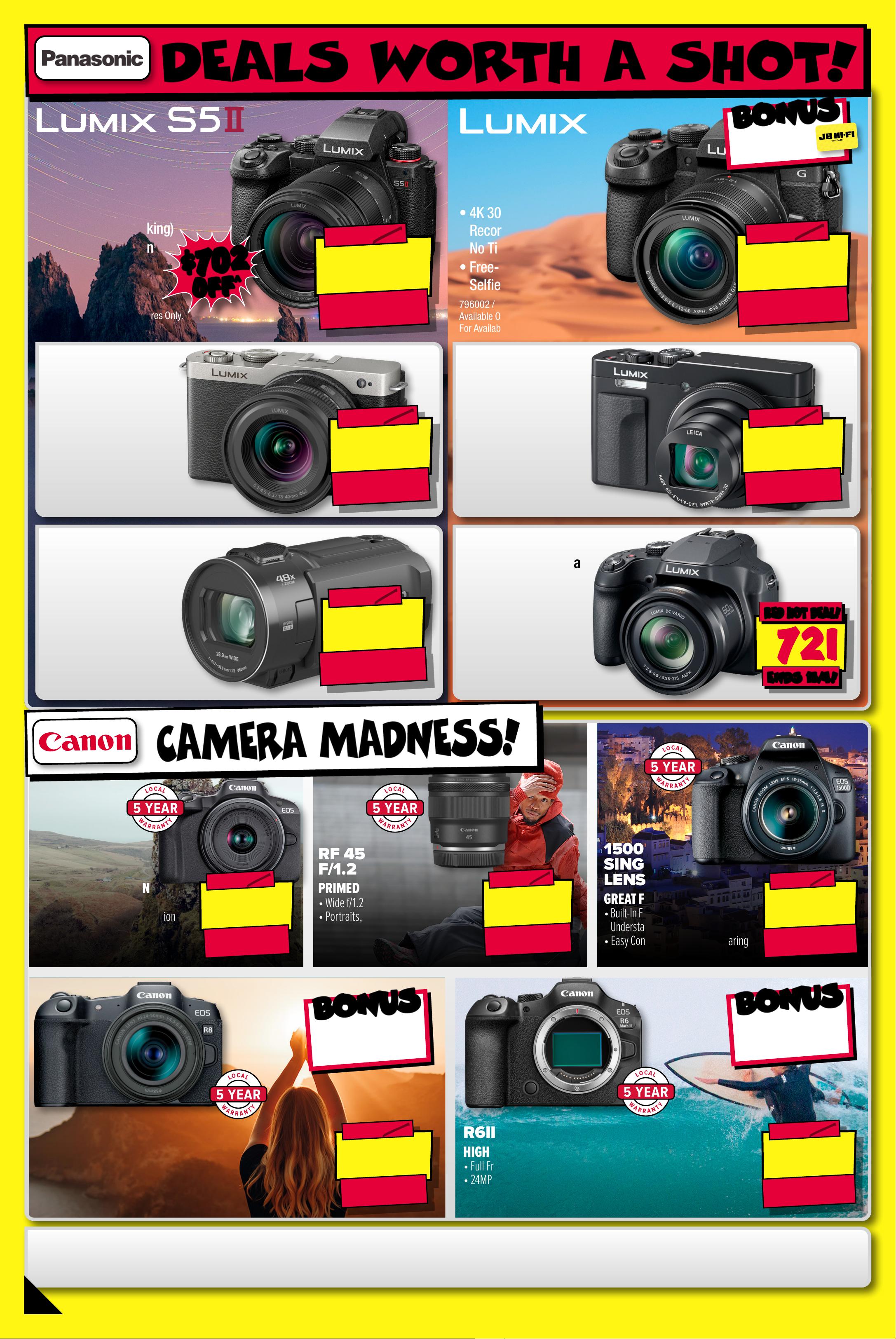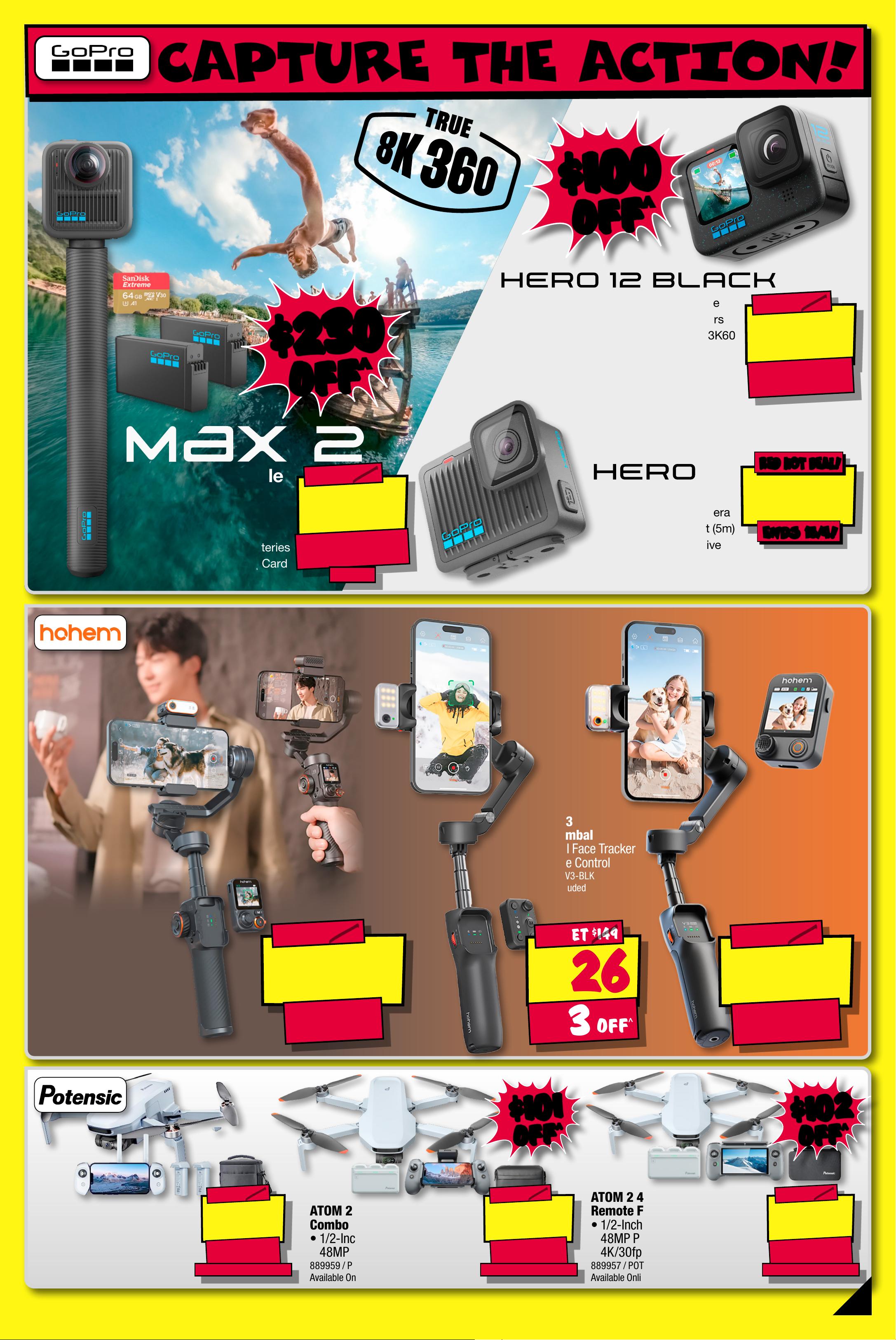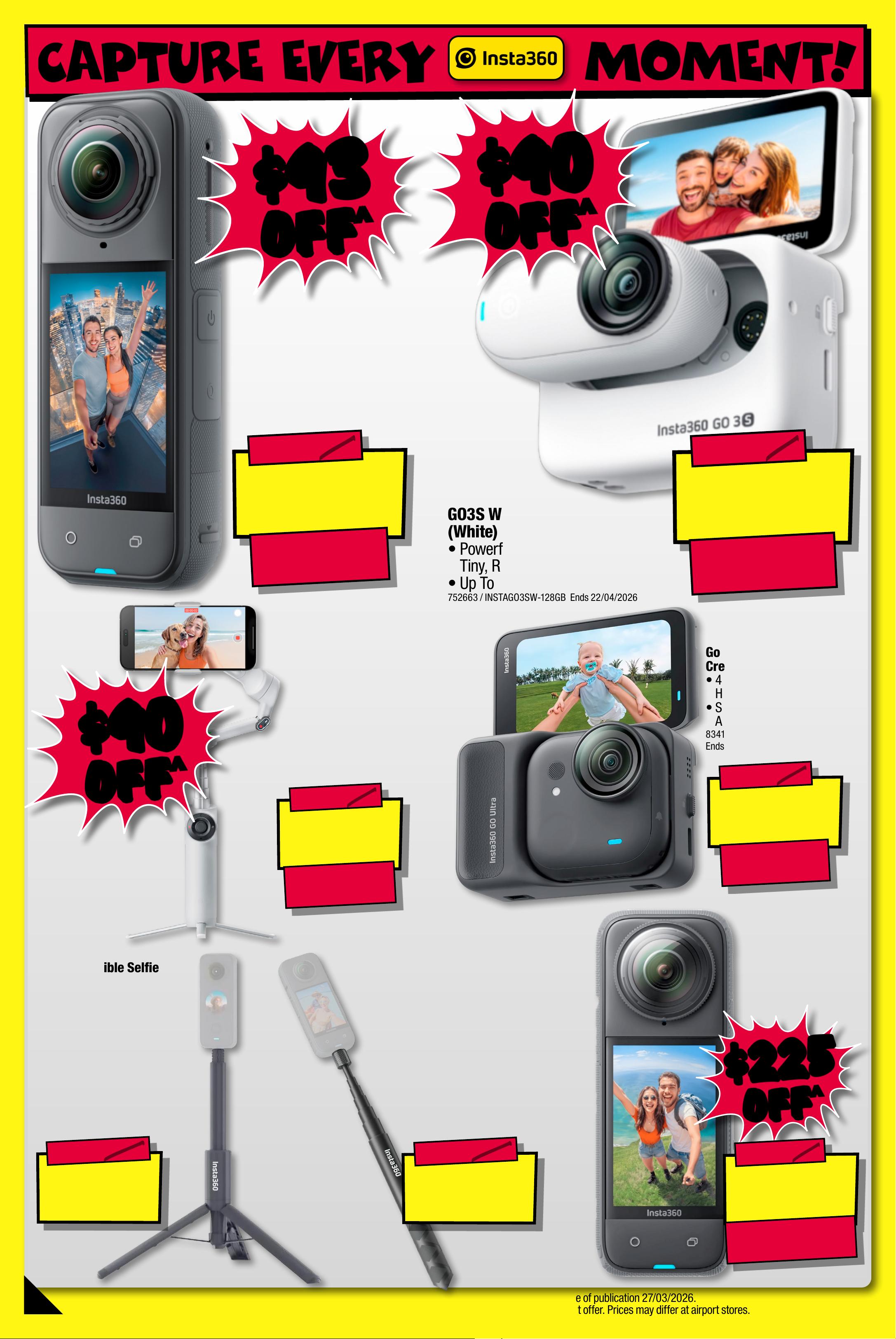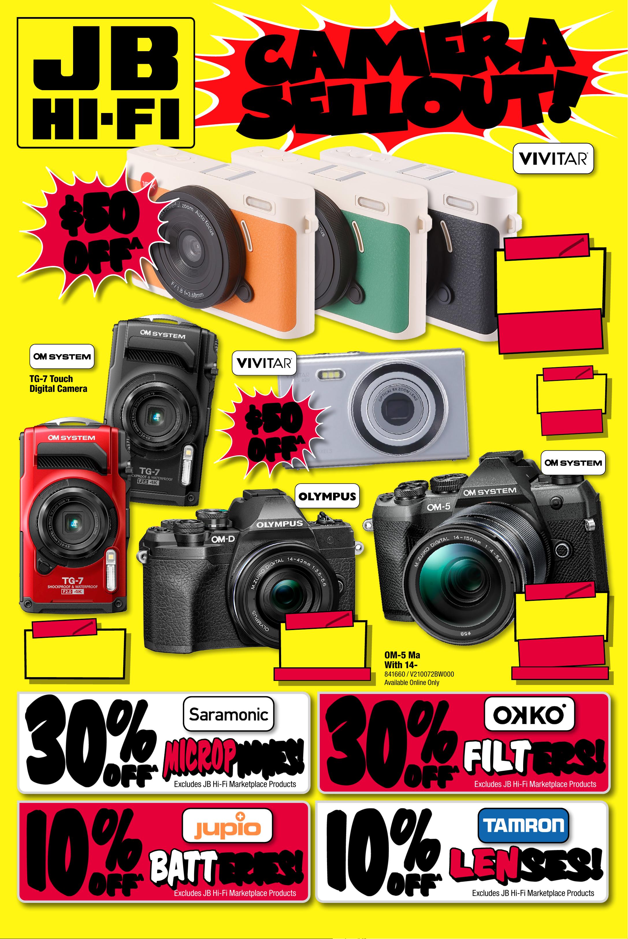 C A MER A C A MER A S E L L O U T! S E L L O U T! $ 24 9 CS-8 Di gi ta l Vide o C ame r a 88831 2 / CS-VC8-BK -W W 5 B U ILT- I N 5 B U ILT- I N VI N TAG E VI N TAG E FI L TERS! FI L TERS! JB JB EXC LUSIV E! EXC LUSIV E! $ 6 49 ADVENTU RE COMBO T ICK E T $ 709 O s m o Actio n 5 PRO Ad v e n t ure Combo78 6 7 05 / CP . OS. 00000350. 01 S M A S H E D! S M A S H E D! $ 79 $ 50 O FF ^ T I C K E T $ 12 9 E x p l o ra F HD D ig i t a l C am e r a 7 0 9 17 7 / Z X - D C 10 0 B A RG AI N ! B A RG AI N ! $ 1 347 ENDS 15/4! ENDS 15/4! RED HO T DE AL! RED HO T DE AL! A 6 4 0 0 M i r rorlessC am e r a W i th E 3. 5- 5.6 /P Z 1 6 - 5 0 m m OSS II L ens 7 9 5 7 14 / I L C E 6 400KB B O NUS B O NUS $100 JB H I-FIGIFT CA RD! † $ 29 7$ 5 2 O FF ^ TI CK ET $ 349 S t a r ts T h u r s d a y 2 / 0 4 / 2 0 2 6, E n ds W e d n e s d a y 1 5 / 0 4 / 20 26 . See P a g e 19 For Conditions . † S e e P a g e 3 F o r C o nd i t io ns . ^ D i s c o un t s a p p l y t o p r e v i o u s t ic k e t e d / a d v er t is e d p r i c e p r i o r t o t h e d i s c o u n t o f f er at the tim e of pub lica tio n 27 /03/2026. A s we nego tia te, pr odu ct s will lik ely have b een so or tld below ticketed/ adver tised price pri o the di sco unt o ff er. Pric es may di f fer at airport stores. Z 30 M irr orle s s Came ra Wi th 16-5 0mm V R L e ns 6 6 0 7 97/ V O K 110 U A $ 99 8 $ 201 OFF ^ T I C K E T $ 1199 $ 328 $ 141 OFF ^ T ICK E T $ 469 P r o Levion Full H D Drone With G P S &Wi-F i 656 1 5 6/ ZXP-D R3 $ $ 141 141 OFF OFF ^ ^ $ 39 9 $ 14 0 OFF ^ FLY MOR E C OMBO T ICK E T $ 5 39 Neo F ly More C ombo 7 8 2 313 / CP .FP .00000 1 85 .03 $ $ 140 140 OFF OFF ^ ^ $ $ 201 201 OFF OFF ^ ^ WP Z2 16MP 4X O pt ica l Zoom Waterproof Dig it al Ca mer a 653250 / WPZ2YL -