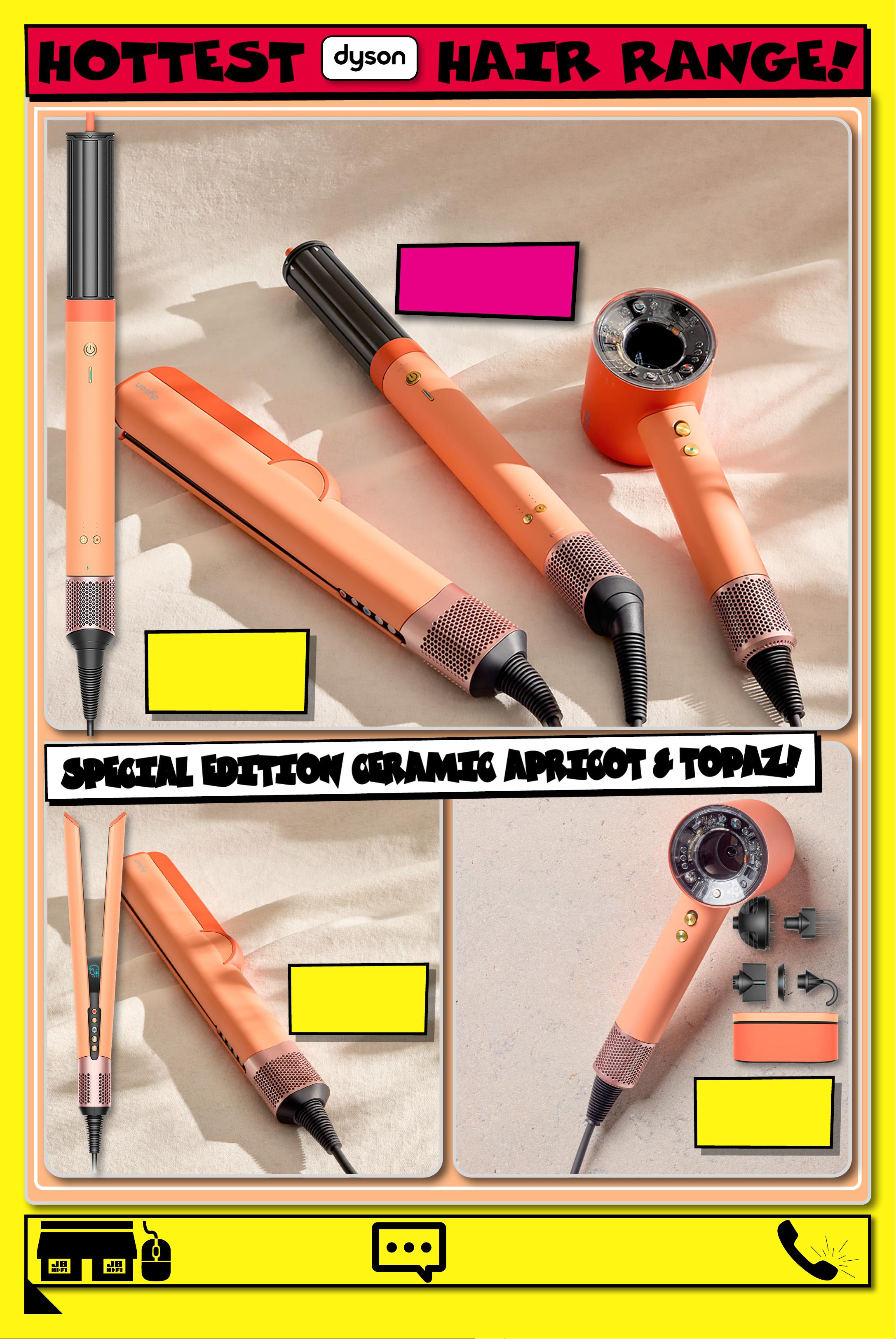 Page contents: Dyson Airstrait™ Straightener and Dryer (Ceramic Apricot / Topaz), Dyson Airwrap Co-anda 2x™ Multi-styler and Dryer (Ceramic Apricot / Topaz), Dyson Supersonic Nural™ Intelligent Hair Dryer (Ceramic Apricot / Topaz),