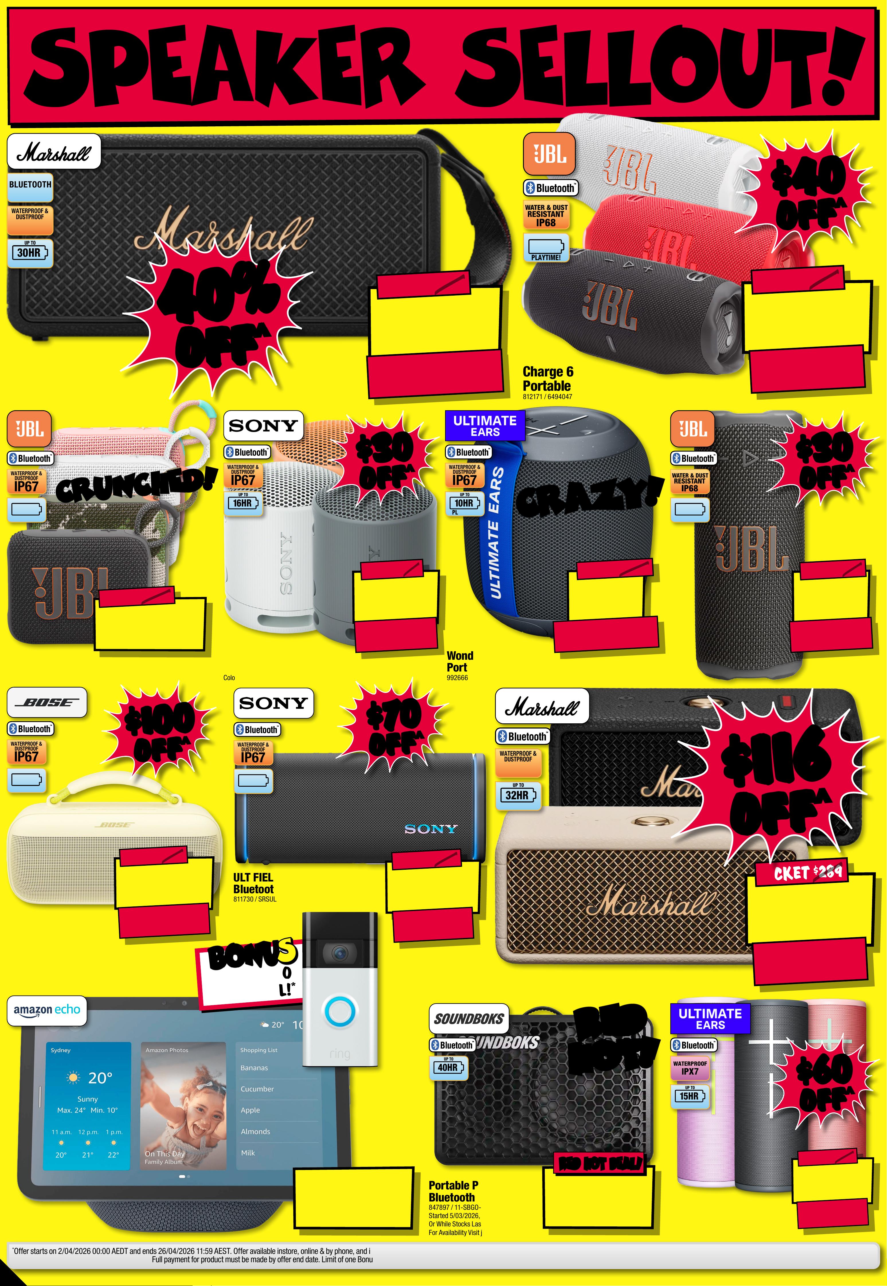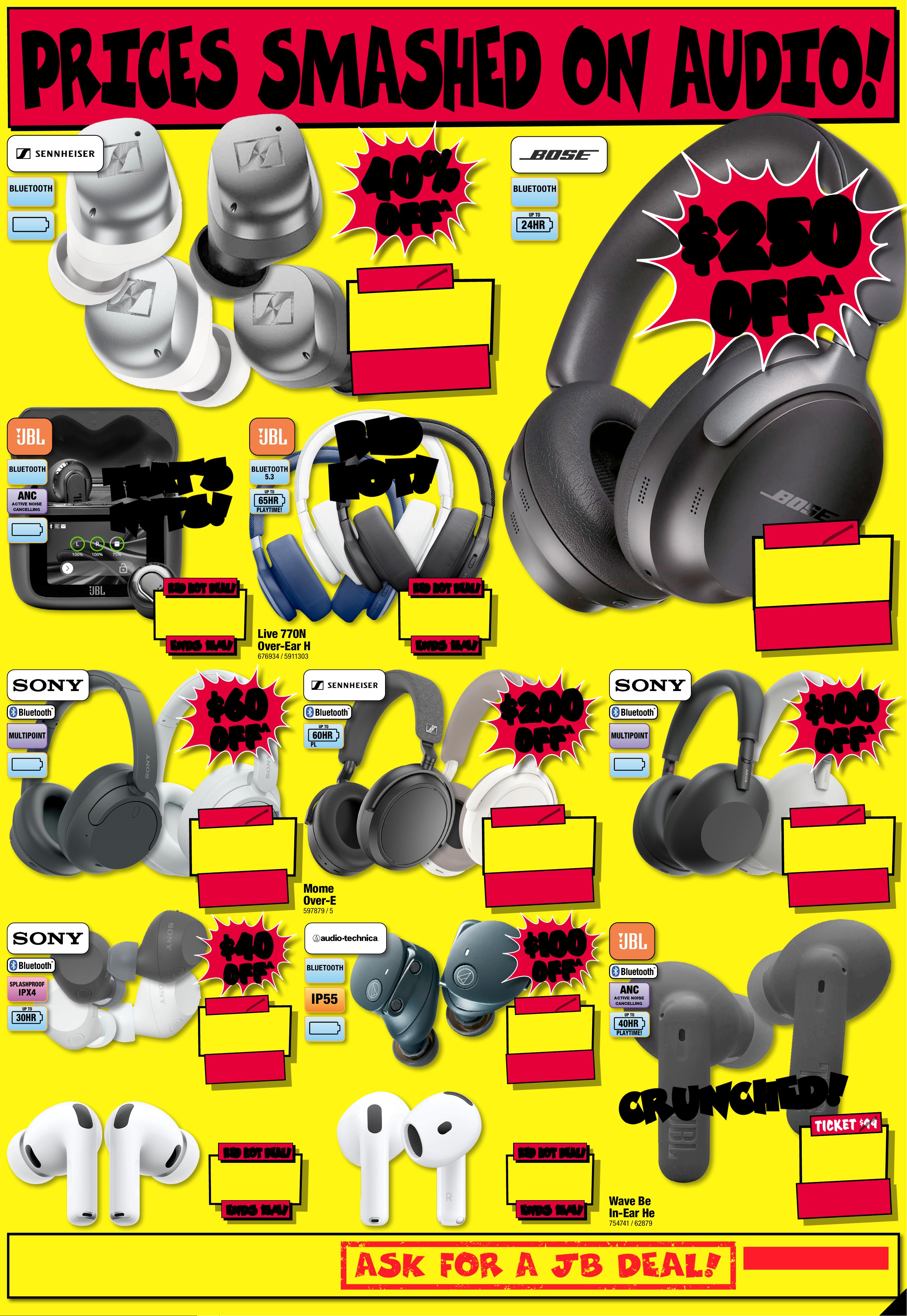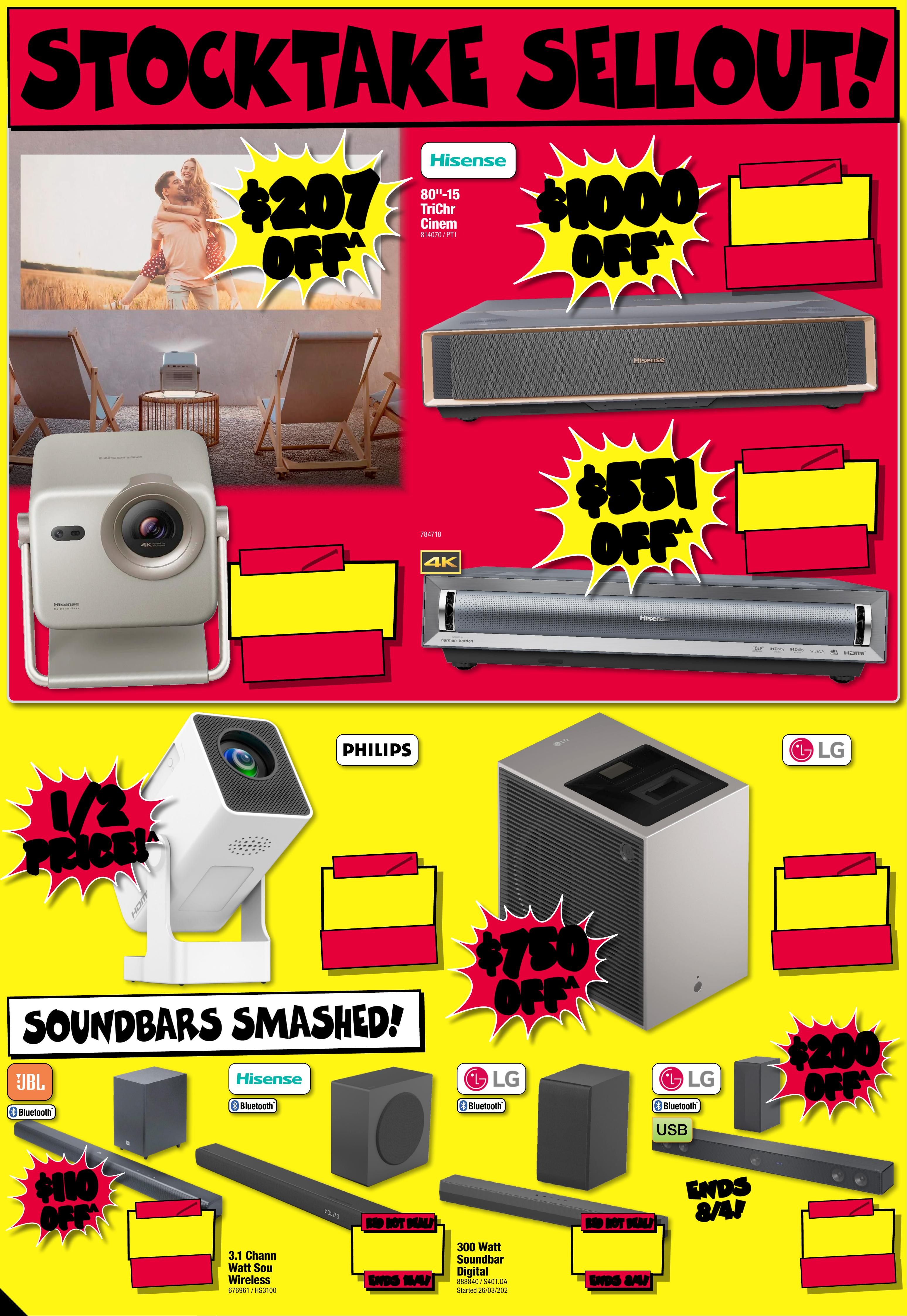 JB7 498_ JBHIB E08 4 1 _S tocktake Sellout_PP1 289( W ) x 40 5(D )mm – PRO OF 8 CHANGES BEYOND PROO F 3 WILL B E CHARGED EX TRA. Starts Thu rsda y 2 / 0 4 / 2 0 2 6, E n ds W e d n e s d a y 1 5 / 0 4 / 20 26 . SeePa ge 31 F or Conditions . ^ Dis coun ts app ly t o previous tick eted/ adver tised price pri or to t he dis coun t of fer at t he time of printing 1 9/0 3/2026. A s we nego tia te, pro duct s will lik ely have b een sol d below t icketed/advert ised p rice pr ior t o the d iscoun t offer . Price s may d if fer at ai rpor t s tore s. S T O C K TA K E S T O C K TA K E S E L L O U T! S E L L O U T! $ 3 59 $ 440 OFF ^ T ICK ET $ 799 55 55 % % O FF O FF ^ ^ Station Cordless Sti ck V acuu m Cle aner W i th Self Empty Hub 8 174 6 0 / DRE-Z20S $ 84 9 $ 85 0 OFF ^ 47MM T ICK E T $ 1699 AMOLED SCREEN Epix ™ Pro (Gen 2) Sa pphire Edition Smar t watch 652378 / 010 - 0 2 8 0 3 -12 S t a r ted 1 / 0 4 /20 26 , E n d s 3 0/ 0 4 /20 26 $ 39 9 $ 25 0 OFF ^ T ICK E T $ 649 PLAY TIME!UP TO 24HR 5 .3Qui etComfort Ult ra N oise Canc elling Head phones ( Gen 1 ) 6 5 9955 / 880066-0 1 00 $ $ 250 250 OFF OFF ^ ^ $ 1 549 ENDS 15/ 4! ENDS 15/ 4! RED HOT DEAL! RED HOT DEAL! 4300mAh BA TTER Y 50MP TRIPLE C AMERA SYSYEM 6.3" FHD+ DISPLAY G al a x y S 2 6 5 12 G B 8 8 40 34 S t a r t e d 26 / 0 3 /20 26 S M A S H E D! S M A S H E D! $ 1 0 99 $ 400 OFF ^ T ICK E T $ 1499 5 1 2 G B SSD RAM 24GB 1 4" Notebook 84 0501 / CK0R0P A#ABG 24GB 24GB RA M! RA M! $ $ 400 400 OFF OFF ^ ^ $ 599 $ 90 0 OFF ^ T ICK E T $ 1499 60 60 % % OFF OFF ^ ^ DEE BOT N30 Pr o OMNI Rob ovac 7824 4 8 / N3 0 PRO O MN I W T $ 24 6 1 $ 7 30 OFF ^ T I CK E T $ 3 1 91 O L E D 200 MOTION RATE 65" 4K Sm art AI OL ED TV 804840 / QA 65S 90FA EX X Y A B S O L UT E A B S O L UT E M A D N E S S! M A D N E S S! 1/2 1/2 PRICE! PRICE! ^ ^ C LE A R A NCE ! C LE A R A NCE ! UNT IL SOLD OU T ! PRICED TO CLEAR! PRICED TO CLEAR! WHILE STOCKS LAST! WHILE STOCKS LAST! -