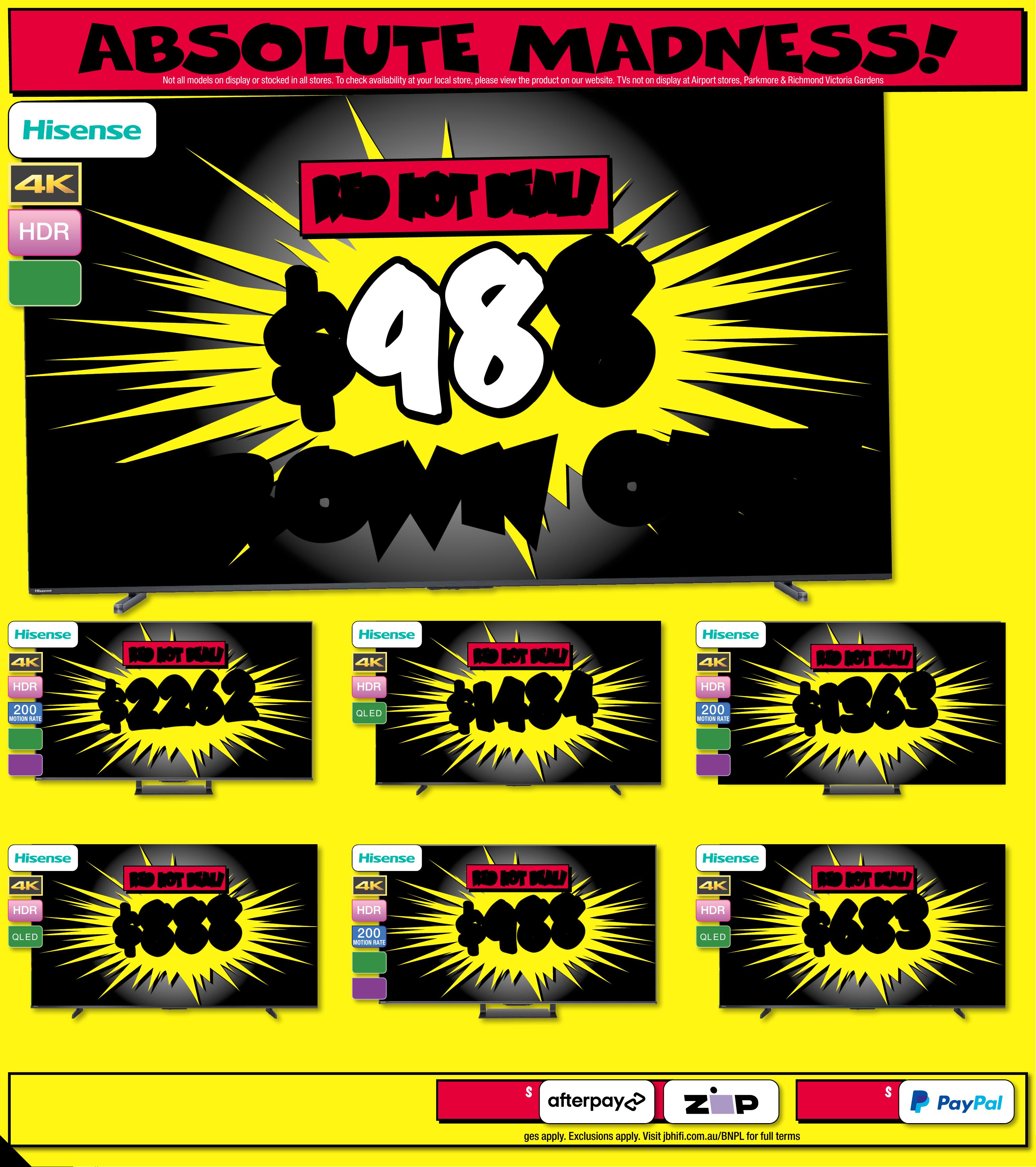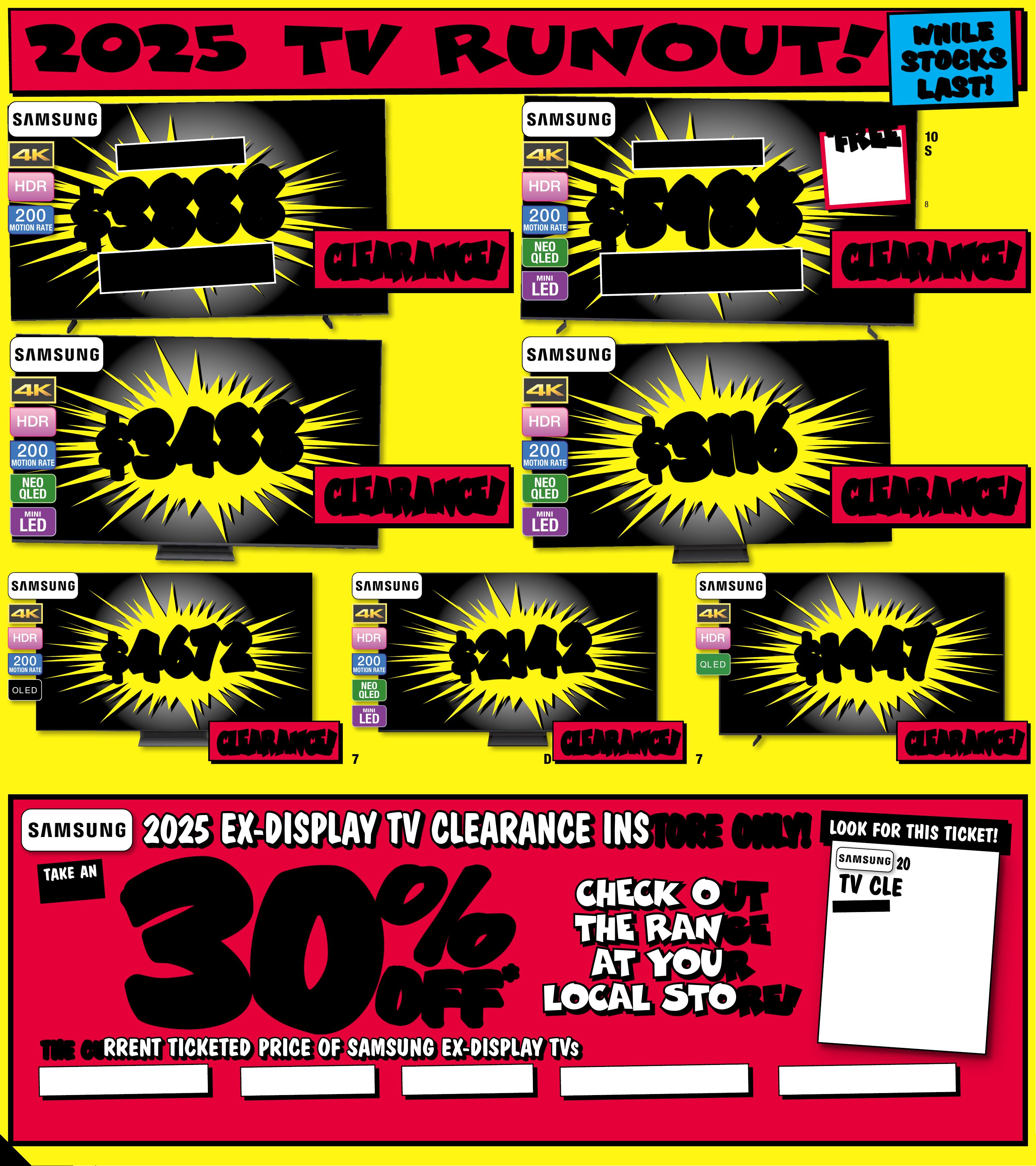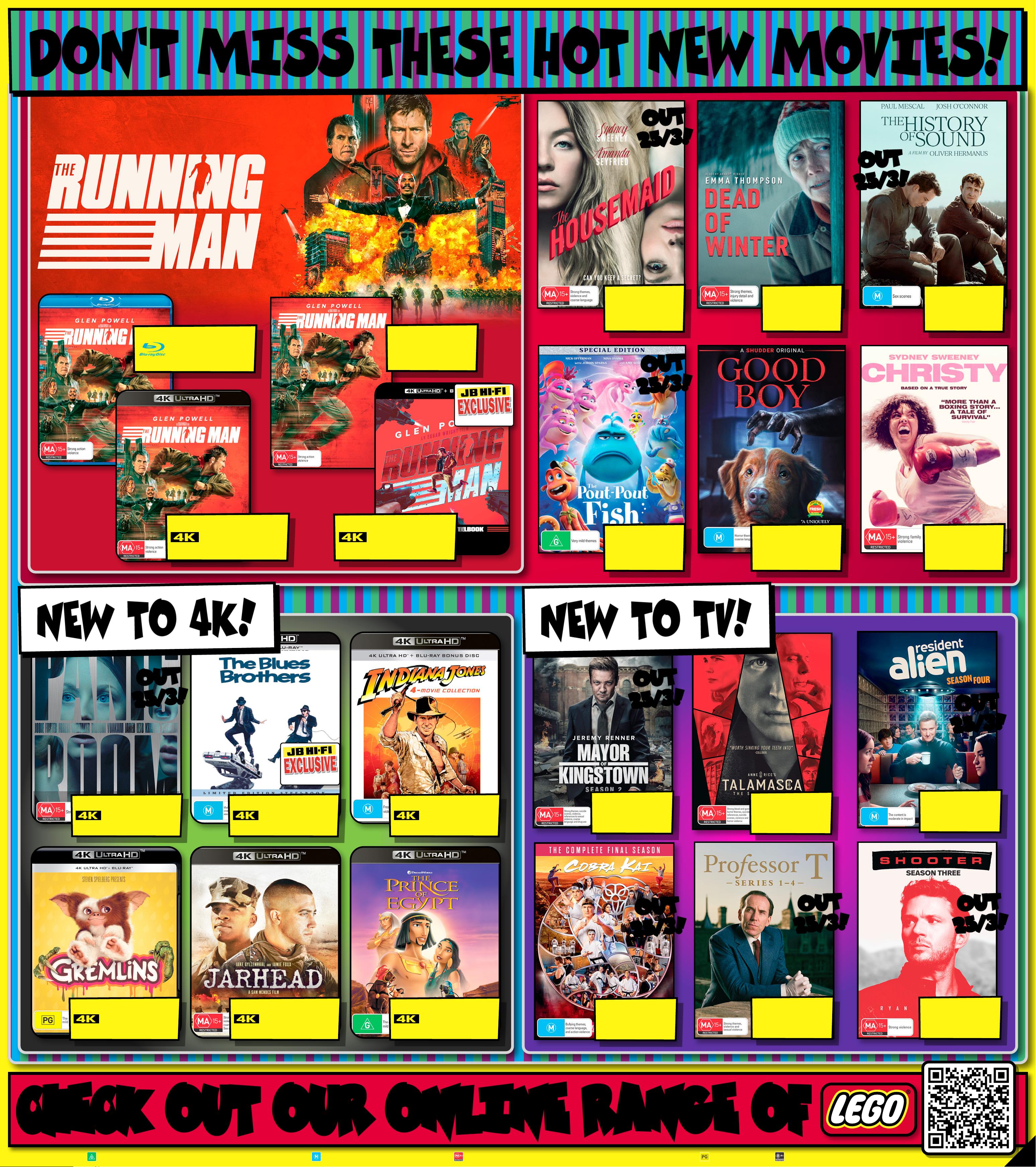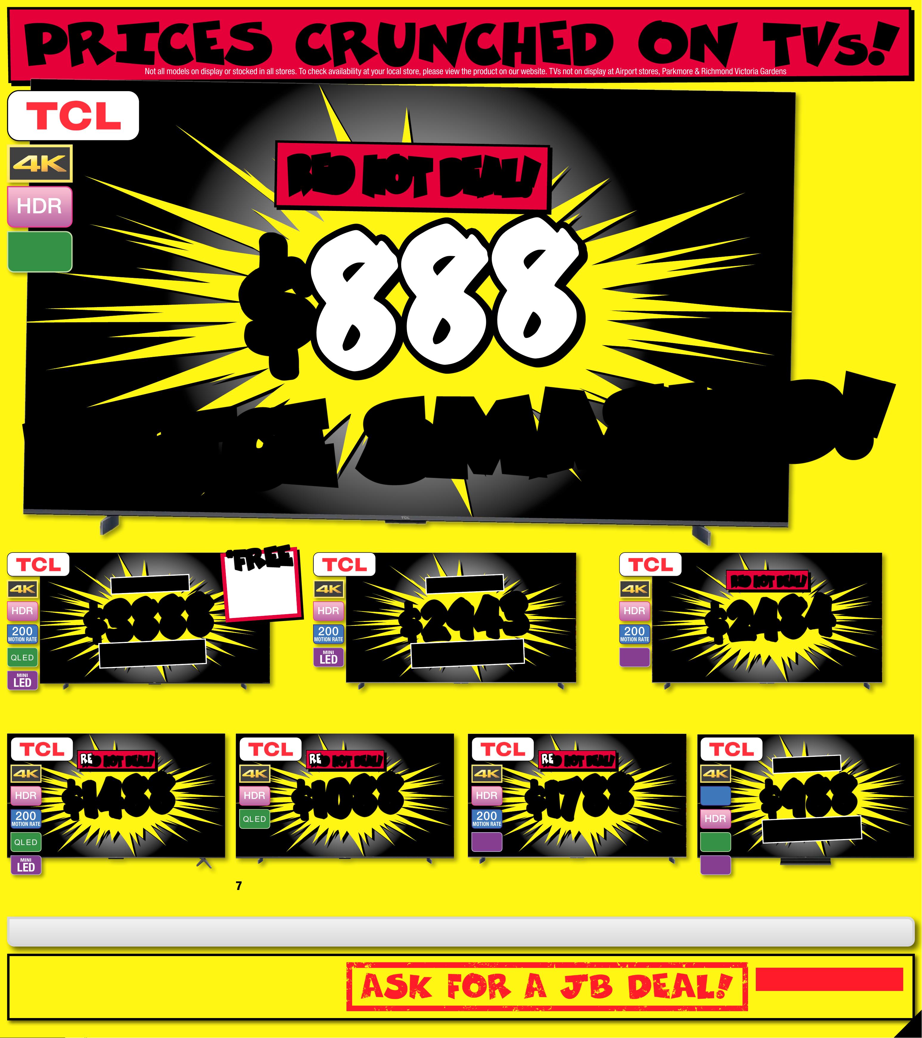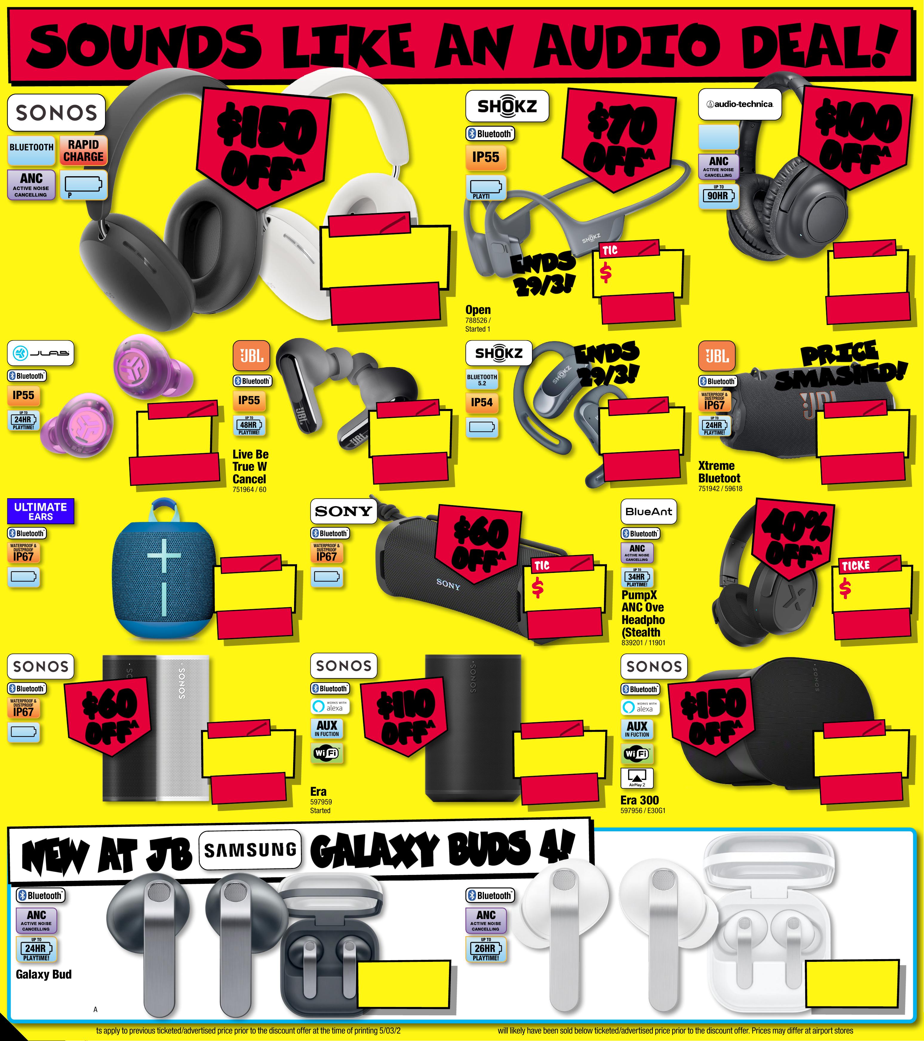 J B 7 4 2 3 _ J B H I B E 0 8 2 5 _ A l w a y s C h e a p P r i c e s / S m a r t H o m e B o n a n z a _ P P 1 1 2 8 9 ( W ) x 3 2 0 ( D ) m m – PR O O F 6 C H A NG E S B E Y ON D P R O O F 3 W I L L B E C H AR GE D E X T R A . P l e a s e N o t e : T h e P l a y B o o s t e r s & B o o s t e r T i n s A r e A s s o r t e d , S t y l e s V a r y . C u s t o m e r s W il l R e c e i ve O n e R a ndomly Cho sen I tem Per O rder $ 89 $ 89 EA $ 109 EA $ 68 $ 59 $ 1 05 $ 11 0 $ 15 0 $ 70 $ 49 O UT O UT 2 6/ 3! 26 / 3! O UT O UT 2 7/ 3! 2 7/ 3! O UT O UT 2 0/ 3! 2 0/ 3! Ratings Classificat ions: suita ble fo r all age s. G8 + sui ta ble for p ers ons 8 ye ars a nd over. sui tab le for p ers ons 15 year s and ov er . restr ict ed to p ers ons 15 year s and ove r . E exempt f rom cl ass ifi cat ion. parent al gui dance. Res tri cte d to adul ts 18 year s and o ver. $ 32 EA $ 11 EA PRE-ORDER PRE-ORDER NO W! N OW! O U T 2 7/ 3 ! O U T 2 7/ 3! B O O S T E R T I NS ! B O O S T E R T I NS ! BOOSTER PA CK S! BOOSTER PA CK S! W H I L E ST O C KS L AS T . S T O C K W I L L V A R Y B Y ST O R E . $ 49 9 EA 128GB Meta Ques t 3S 1 28 GB 789135 / 638921 0 Ava ilabl e Onli ne & S elected Stores Only. For Ava ilabilit y Vi sit jbhi.fi /7 89135 H O TTES T G A M I N G DEA L S A T J B ! Nintendo Switch 2 Co nsol e + Mario Ka r t W o rld Bundle808381 / 1 0 10 3 * S t a r t s 12:00am AEDT 10/03/202 6 & end s 1 1.5 9pm A E S T 1 4/04/2026. Offer va lid on purchases m a d e i n Austr alia , New Z eal and or t he M y Nintendo Store and are r esid ent s of Au st rali a or Ne w Z e a l a n d who re deem by 11.59 pm A ES T on 15/ 05 /2 02 6 at nin ten do.c om/ au/nintendo-switch-2 - b o n u s -of fer. Mu st re tai n pro of of pu rch ase. L imi t one cla im per person. Redempt ion requires an ac c o u nt and anacceptanc e o f the a cco unt ag r eement and privacy p olicy. To review vis it accou nts. nin t e n do. com. O nce cl aims h a ve been r eceived and veri fied , plea se al low up t o 5 busi nes s days for y o u r di gital code to be te xted to y ou. T he co de is va lid fo r thre e year s. N ot va lid on pr o duct s purchased f r om t hird pa rt y (J B Hi- Fi M ar ketp lace S elle rs) o r comme rci al ord ers . Whi le st ock s las t. To view f ull te r m s & condi tio ns vis it: ninten do.com/au / nintendo-switch- 2-bo nus-offer/terms-and- conditions $ 76 9 EA BUN DL E B O N US B O N US 12 MONTH NINT ENDO SW IT CH ONLINE + + E XPA N S ION PACK MEMBERSHIP! * Wh en You Pur chas e A Nint endo Sw itch 2 + M ar io Ka r t World B u ndle $ 99 EA $ 30 OFF ^ TI CK ET $ 129 G 3 21 L i gh t sp e edW ir e l es s G a mi ng He a d se t 8 292 7 4 / 9 81 - 0 0 1564(G321) $ 79 $ 20 OFF ^ TI CK ET $ 99 Mi n i Arcade P r o - Retro G a me Cabinet8 3 52 9 4/ BM 1 1000 GO GO R ET R O ! R ET R O ! $ 48 ENDS 1/ 4! ENDS 1/ 4! RED H OT DE AL! RED H OT DE AL! Quan tum 20 0 Gaming H eadse t 4759 05 / 4805509 $ 1 79 ENDS 1/ 4! ENDS 1/ 4! RED H OT DE AL! R ED HOT D EAL ! 81 0 Wireless O v e r E a r G a mi ng He a d se t 6 0 24 3 0 / 54 6 8 7 79W hi l e S t o c k s L a st. F o r A v a il a b ili t y V isit jb hi . fi / 6 0 2 4 3 0 Page contents: Samsung 75" Q7F QLED 4K Smart TV [2025], Samsung 77" S90F OLED 4K Smart AI TV [2025], Samsung 75" QN70F NEO QLED 4K Mini LED Smart AI TV [2025], Samsung 100" QN80F NEO QLED 4K Mini LED Smart AI TV [2025], Samsung 98" DU9000 Crystal LED UHD 4K Smart TV [2024], Samsung 85" QN70F NEO QLED 4K Mini LED Smart AI TV [2025], Samsung 85" QN85F NEO QLED 4K Mini LED Smart AI TV [2025],JB7 423_JBHIBE0825_ Alwa ys Cheap Pr ices / Smart Home Bonan za_PP1 2 289( W ) x 320(D) mm – PROOF 2 *O f fer S ta rt s 19/0 3 /2 02 6, unt il sol d out . Dis coun t is app lied t o the cur ren t tick eted p ric e of ex-di splay m odel s (as mar ked ) ins tore o nly. Of fe r not ava ilab le onlin e. Avail abili ty i nst ore limi ted a nd subj ect t o chan ge, che ck onlin e and c all you r loc al st ore to c heck av aila bilit y. Your lo cal s tor e will no t be abl e to acc ess ex- disp lay st ock f rom an oth er loc ati on. E x-di splay m odel s are in w ork ing or der bu t have be en dis played a nd us ed ins tor e for de mons tr atio n for s igni fica nt per iod s. May h ave co nside rab le scr een ti me, cos met ic dama ge, mis sing st and s, leg s and pr oduc t man ual, a nd be so ld wi th a 3r d par t y remo te co ntr ol. M ay not c ome wi th or igina l pack aging o r par ts . Deli ver y & ins tall c os ts may b e requ ired f or som e scre en size s and mo dels . 2 0 2 5 E X - D I S P L A Y T V C L E A R A N C E I N S TO R E ON L Y ! 2 0 2 5 E X - D I S P L A Y T V C L E A R A N C E I N S TO R E ON L Y ! TH E CU R R E N T T I C K E T E D P R I C E O F S A M S U N G E X - D I S P L A Y T V TH E CU R R E N T T I C K E T E D P R I C E O F S A M S U N G E X - D I S P L A Y T V S S TA K E A N EX TRA C H E C K O UT C H E C K O UT T H E R A N GE T H E R A N GE A T Y O U RA T Y O U RL O C A L S T O RE! L O C A L S T O RE! 30 30 % % O FF O FF * * L O O K F O R T HIS T IC K E T ! 2 0 25 EX-D ISPLA Y T V C L E ARANCE!THE CURRENT TICKETED PRICE OF SAM SUNG E X-DISPL AY TV S TAKE A N EX TR A 30 % OFF * SINGLE UNITS ONLY! UNT IL S OLD O UT! INSTORE ONL Y! STOCKS V ARY BY STOR E! DI SPL AY UN ITS ONL Y! $ $ 19 47 19 47 Q L E D 7 5" 4K QLED Smar t T V • A I Proce ssor • U nleas h Cinema tic C o lour 8 0 4 8 12 / Q A75Q7 FA AW XX Y $ $ 4 67 2 4 67 2 O L E D 200 MOTION RATE 77" 4K Smar t AI O LED TV • NQ 4 A I Gen3 P roces •sor Mo tion X celerat or 1 4 4 Hz 8 0484 1 / Q A77S9 0FA EX X Y 20 2 5 T V RU N OU T ! No t all mod els on di splay o r sto cked in a ll st ores . T o chec k availabili r locty at yo u al st ore, p leas e view t he pro duc t on our we bsi te. T Vs n ot on dis play at A ir port stores, Parkmor e & Richmond Victo ria Gardens. $ $ 214 2 214 2 LED MINI N EO Q L ED 200 MOTION RATE 7 5" 4K Neo QLED Smar t A I Mini LE D T V • N Q4 A I Gen2 Pro cesso r •Quantum Ma trix T echnology 804 825 / QA75Q N70FAW X X Y # Se e