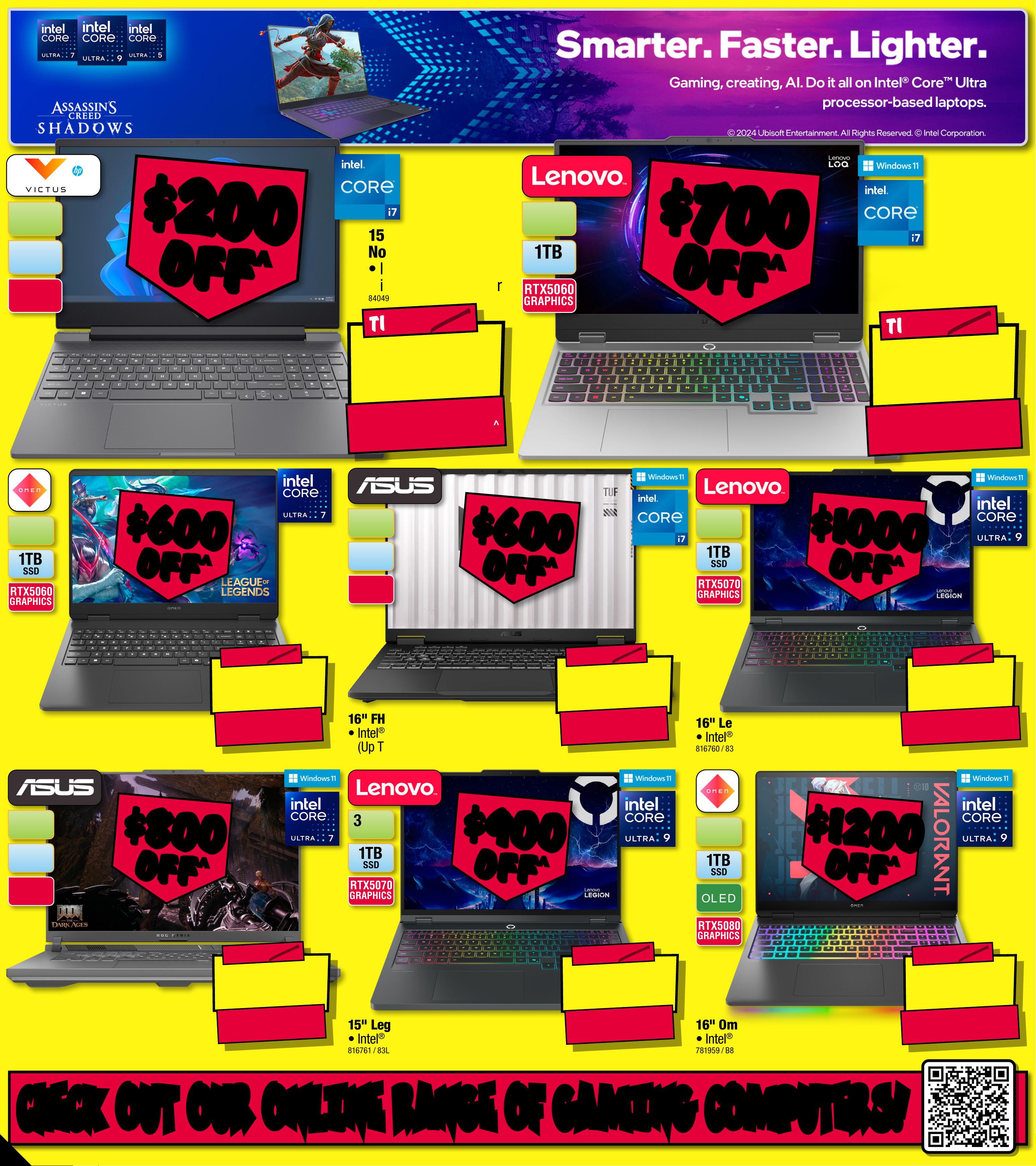 JB7 423_JBHIBE0825_ Alwa ys Cheap Pr ices / Smart Home Bonan za_PP8 289( W ) x 320( D )mm – P ROOF 2 C HE C K OU T O U R ON L I NE RA N G E O F G A M I N G C O M P U TE R S ! C HE C K OU T O U R ON L I NE RA N G E O F G A M I N G C O M P U TE R S ! ^ Dis coun ts a pply t o previous ticketed/ad vertis ed price prior to the di ketedsco unt of fe r at the t ime of p rint ing 5 /03 / 20 26. A s we ne got iate, p rodu cts w beeill likely have n sold b elow t ic /advertised pri c e prio r to the d isco unt o ff er . Pr ices m ay dif fer a t air por t st ore s. $ 4 79 9 $ 12 0 0 OFF ^ T ICK ET $ 5999 RTX5080 GRAPHICS O L E D 1 TB S SD RAM 32GB 1 6 " O m en MA X Gaming No tebook • I n t el ® Core ™ Ultra 9 P rocess or (275 HX ) 7 8 19 5 9 / B 8 5MZPA#ABGAvai lab le Onl ine & Se lec ted S tor es On ly. For Availabilit y Visit jbhi.fi/781959 $ $ 1200 1200 OFF OFF ^ ^ $ 3 59 9 $ 90 0 OFF ^ T ICK ET $ 4499 RTX5070 GRAPHICS 1 TB S SD RAM 3 2GB1 5 " L e g ion 5 Pro Gam in g Notebook • I n t el ® Core™ Ult ra 9 Pro ce ssor 27 5HX 8 16 7 61 / 8 3 L U0008AUAva ila ble On line & S elec ted S to res O nly. Fo r Availabi lity V isit jbhi. fi/ 81 6761 $ $ 900 900 OFF OFF ^ ^ $ 309 9 $ 80 0 OFF ^ T ICK ET $ 389 9 RAM 1 6GB 1 TB SSD RTX5060 GRAPHICS 1 6" FH D+ 1 6 5Hz Gamin g L aptop • Intel ® Core ™ Ult ra 7 Pro cessor 255 HX 2.4 GH z 80 74 8 1 / G 61 5LM-RV0 90W Available Online & Selected Stores Onl y . Fo r Avai labi lit y Visit jbhi.fi /80 7 4 81 $ $ 800 800 OFF OFF ^ ^ $ 2999 $ 1000 OFF ^ T ICK ET $ 3999 RTX5070 GRAPHICS 1 TB S SD RAM 32GB 1 6 " L e gion 5 Pro Gam ing Notebook • I n t el ® Core ™ Ult ra 9 275H X Proces sor 8 16 7 60 / 8 3 F3004PAUAva ila ble On line & S elec ted S to res O nly. Fo r Availabi lity V isit jbhi. fi/ 81 6760 $ $ 1000 1000 OFF OFF ^ ^ $ 229 9 $ 600 OFF ^ T ICK ET $ 2899 RAM 1 6GB 1 TB SSD RTX5060 GRAPHICS 1 6 " F H D+ 1 6 5Hz Gamin g L aptop • I n t el ® Core ™ i7 Proces sor 1 4 65 0HX ( U p T o 5.2G Hz) 8 0 74 5 0 / FX608JMR-RV010W $ $ 600 600 OFF OFF ^ ^ $ 169 9 $ 20 0 OFF ^ T I CK E T $ 1 899 RAM 1 6GB 5 1 2 GB SSD RTX4050 GRAPHICS 1 5 " Victus G aming No tebook • I ntel® Core ™ i 7- 1 3620 H Proce sso r 8 4 0 49 5/ CB8C3PA#ABG$ $ 200 200 OFF OFF ^ ^ $ 1999 $ 70 0 OFF ^ T I CK E T $ 269 9 RTX5060 GRAPHICS 1 TB SSD RAM 24GB 1 5 " LOQ Gaming Noteb ook • Intel® Core ™ i7 Pr ocessor 14 7 0 0 H X 815 0 0 9 / 83JE0 02HAU $ $ 700 700 OFF OFF ^ ^ $ 229 9 $ 600 OFF ^ T ICK ET $ 2899 RTX5060 GRAPHICS 1 TB S SD RAM 24GB 1 6" Ome n Gaming Not e book • Intel ® Core ™ Ult ra 7 Pro cessor 2 5 5H 840504 / CJ5A7P A#AB G Not Available In A ll S tor es. F or Stor t jbhie Locations Visi .fi/ 84 0 50 4 Fo r Avai labil it y $ $ 600 600 OFF OFF ^ ^ 8 -