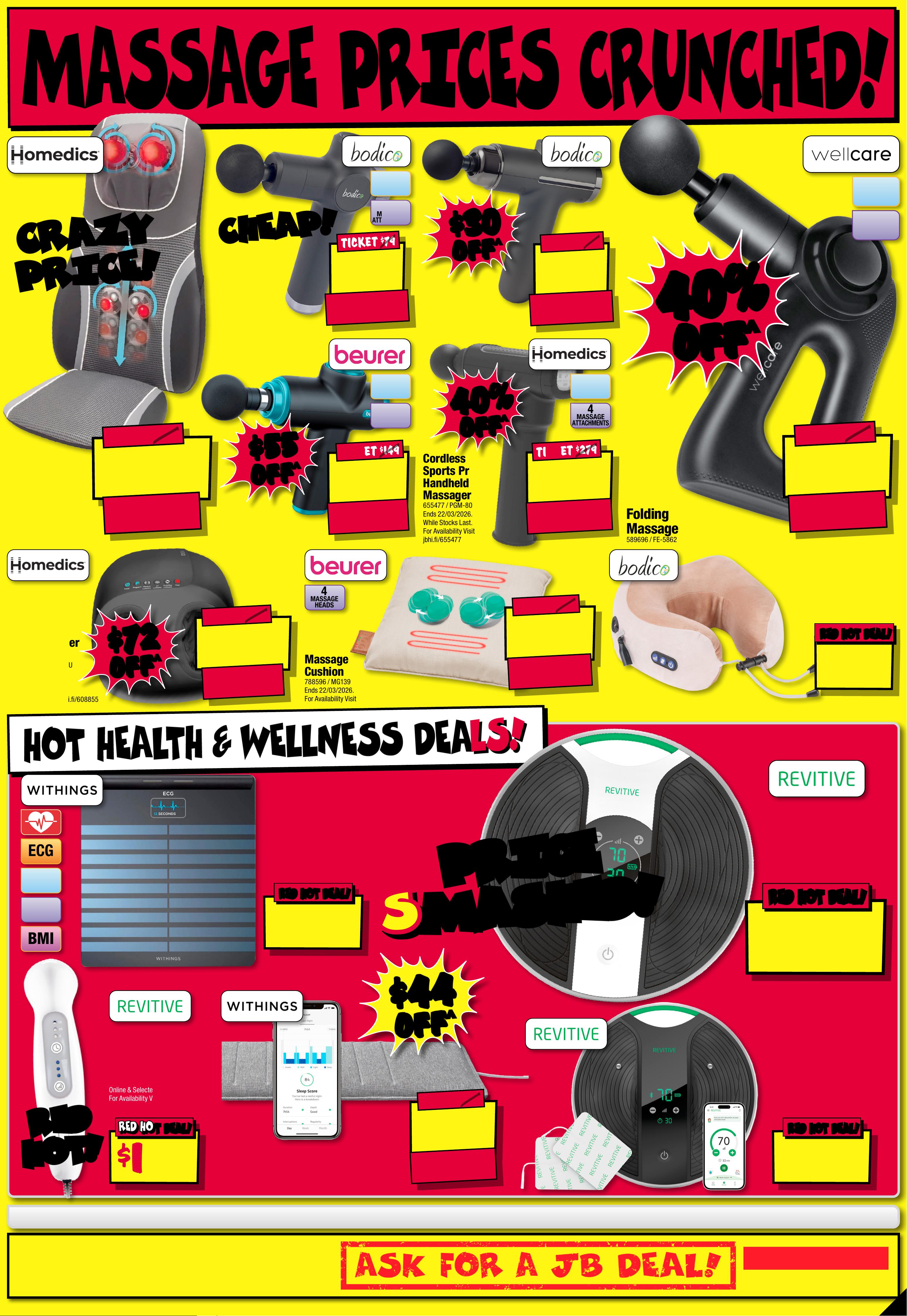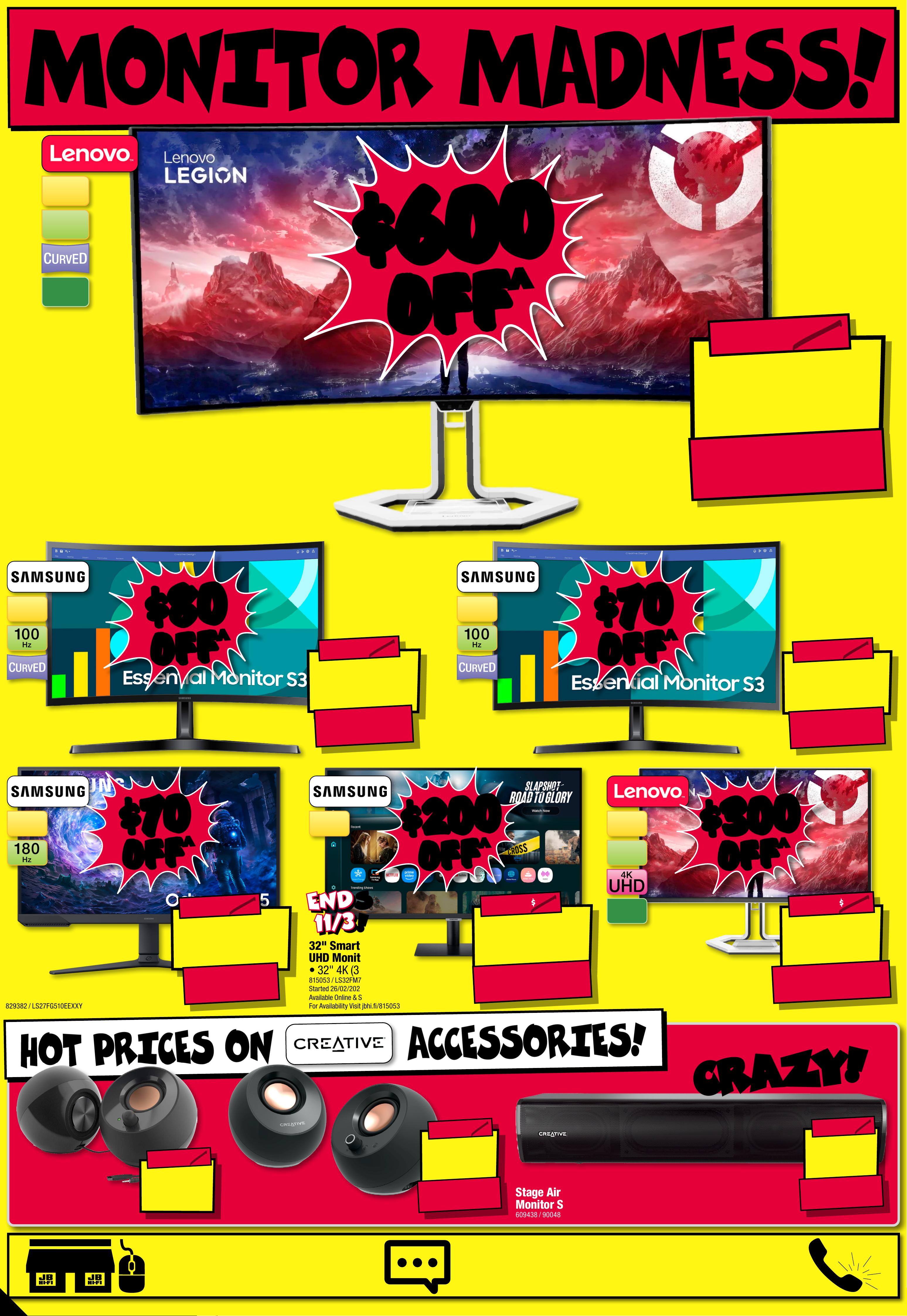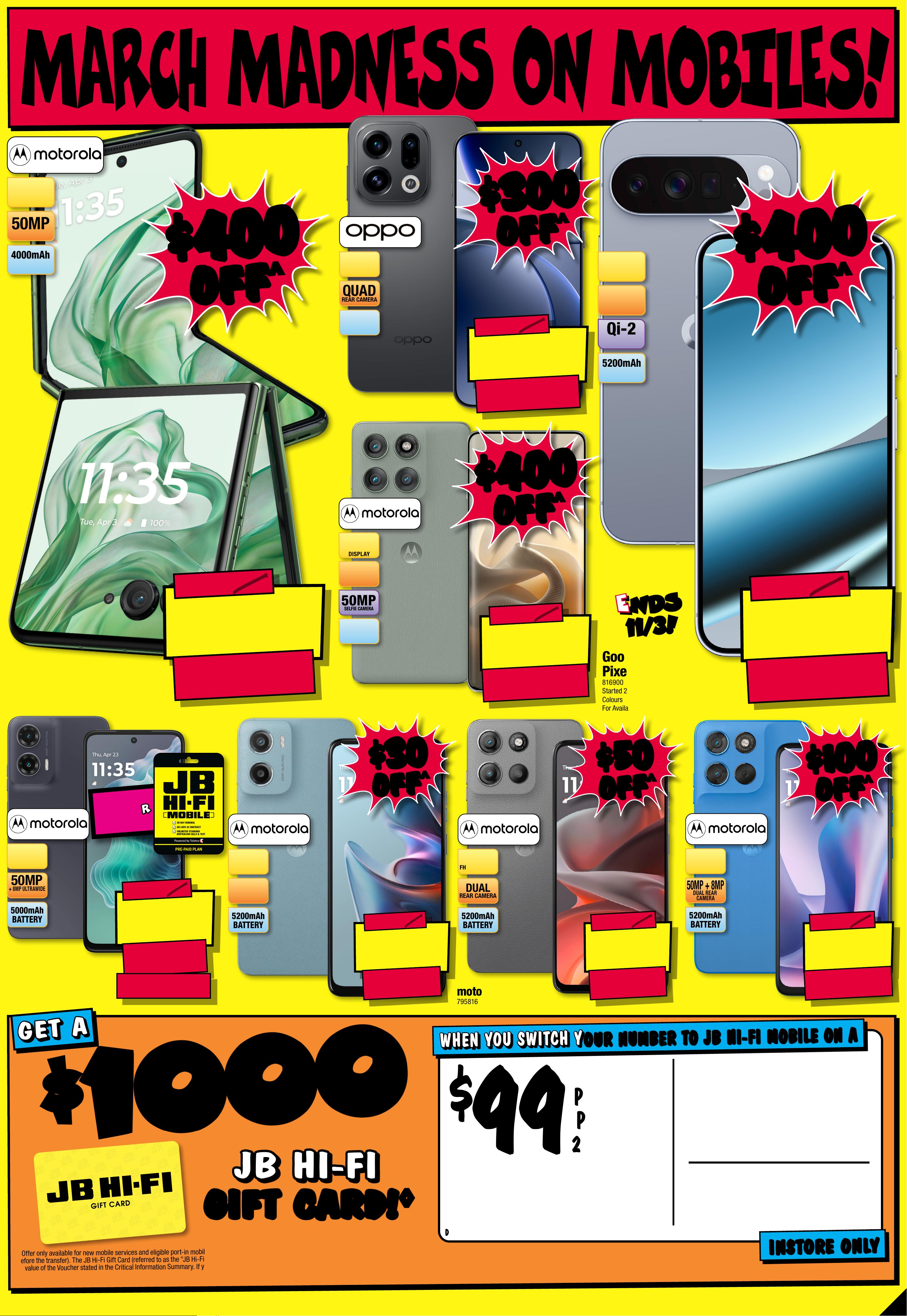 JB7242_ JBHIB E0824_ March Ma dness_PP1 289( W ) x 405( D )mm – PRO OF 8 CHANGES BEYOND PROO F 3 WI LL BE CHARGED EX TRA . S t a r ts T h u r s d a y 5 / 0 3 / 2 0 2 6, E nds Wednesd a y 1 8 / 0 3 / 20 26 . See P a ge 4 3 F or C on d i t i on s . ° S e e P a g e 1 6 F o r D e t ail s . ^ D i s c o u n t s a p p l y t o p r e v i o u s t i c k e t e d / a d v er t is e d pr i c e p r i o r t o t h e d i s c o u n t o f f e r a t t h e t i m e o f p r i nting 19/ 02 / 2 02 6. A s we ne got ia t kele, prod uct s will li y have be en so ld below ticketed Pric/adver t ised price prior to the discount offer. es may di f fer a t air por t s to res . M AR C H M AR C H M A D N E S S! M A D N E S S! $ $ 720 720 OFF OFF ^ ^ $ 1 67 9 $ 720 OFF ^ T ICK E T $ 2399 O L E D 1 TB S SD RAM 1 6GB 1 4 " Z enBook Notebook79 6 18 3 / UX3405CA-PZ354 W $ 149 $ 15 0 OFF ^ BLUE ON LY T ICK ET $ 299 PLAYTIME! UP TO 50HR A cce n t u m W i re l e s s N o is e Canc elling O ver- E ar Hea d p ho ne s (Blu e - Special Edition ) 787862 / 700 Bl381 ue On ly 1/2 1/2 PRICE! PRICE! ^ ^ $ 349 $ 45 0 OFF ^ T I CK E T $ 799 56 56 % % O FF O FF ^ ^ Q7B+ Rob ot ic Vac u u m 817543 / RR-Q7BP52 -03-BLK PRE-OR DER PRICE! $ 2 19 9 EA $ 2 499 e a FROM MAR CH 11° Gala x y S26 Ultra 5 12 G B 8 84 0 51 Star ted 26/0 2 /2026, E n d s 1 0/ 0 3 /20 26 PRE -O RDER PRE -O RDER N O W! N O W! O UT 1 1 / 3 ! O UT 1 1 / 3 ! 2025 TV RUNOUT! WH IL E ST O CK S L A ST ! WH IL E ST O CK S L A ST ! CR A CK IN ' DE AL S! CR A CK IN ' DE AL S! L I MI T E D STO CK ! L I MI T E D STO CK ! $ $ 16 8 8 16 8 8 T I CK E T $ 289 5 $ 12 07 OFF ^ 8 6" 4 K NanoCell Smar t LED T V 80276 5 / 86NANO80 ASA $ $ 14 8 8 14 8 8 T I CK E T $ 1995 $ 5 07 O FF ^ O L E D 200 MOTION RATE 5 5" 4K Smar t OLED T V 80278 8 / OLED55B5PS A $ $ 26 8 8 26 8 8 T I CK E T $ 4295 $ 1 6 07 O FF ^ LED MINI 200 MOTION RATE 8 6" 4 K QNED Evo A I S mar t Mini LED T V 8 027 75 / 86QNED86ASA $ $ 49 8 8 49 8 8 T I CK E T $ 7995 $ 3 0 0 7 O FF ^ O L E D 200 MOTION RATE 77" 4K E vo AI Smar t Galle r y OLED T V 80 2799 / OLE D77G5 PS A C LE AR ANC E ! C LE AR ANC E ! C LE AR ANC E ! C LE AR ANC E ! C LE AR ANC E ! C LE AR ANC E ! C LE AR ANC E ! C LE AR ANC E ! -